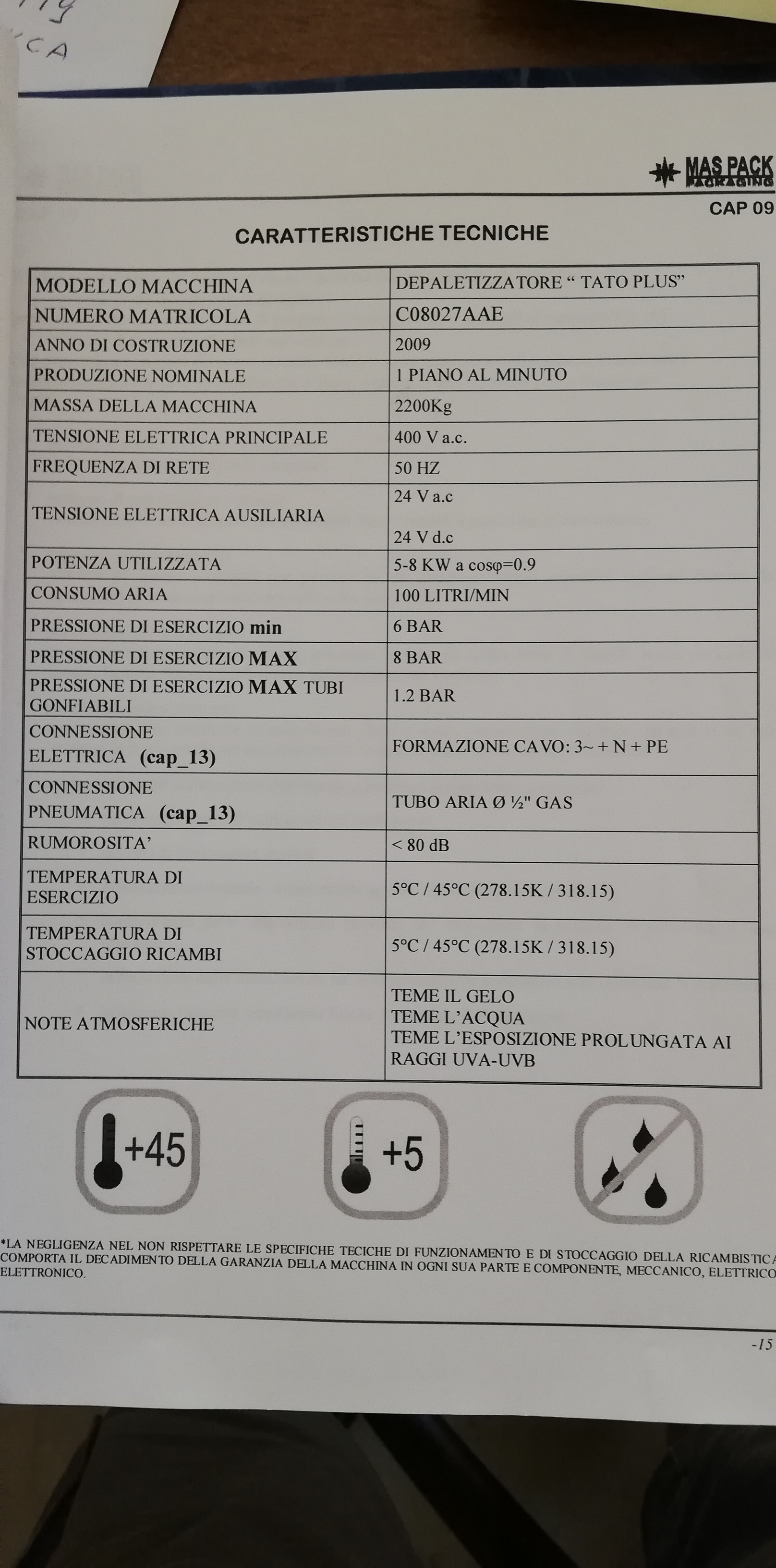 Depalletizer Mas Pack for glass bottles second hand.