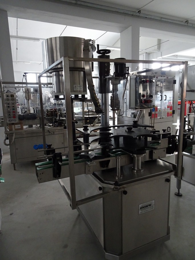 - Filling Machine Clifon in stainless steel, with 6 valves system descending on the bottle. valves ø 22, gravity filling, with safety guards.
